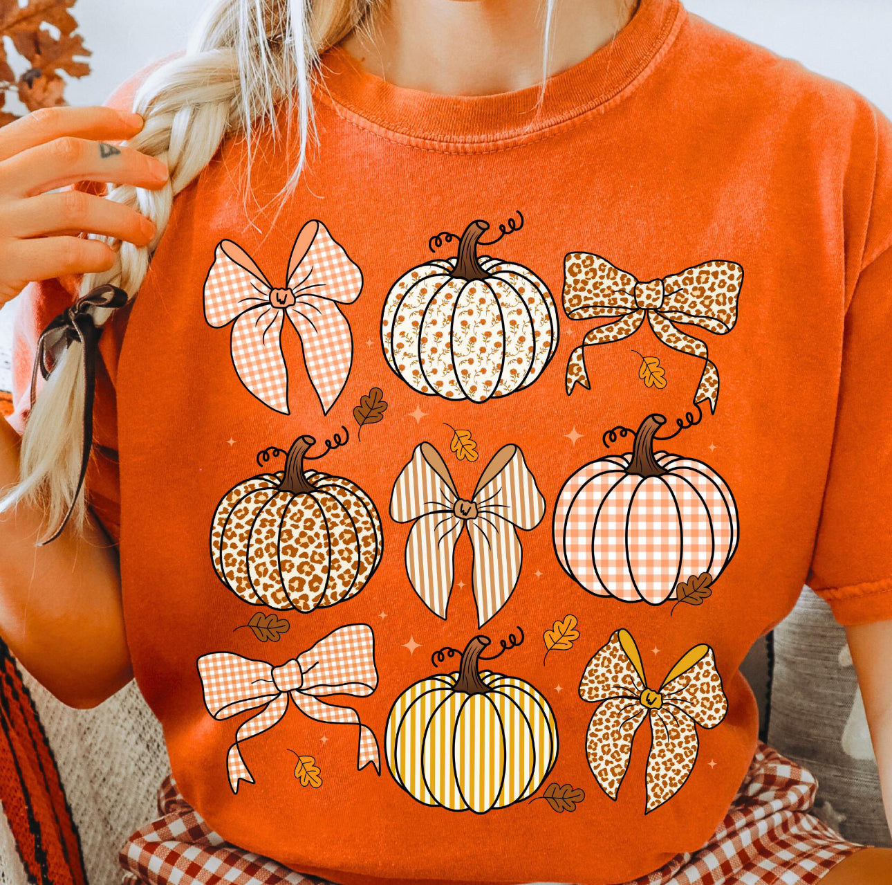 Preppy Pumpkin Bow Comfort Color Tee